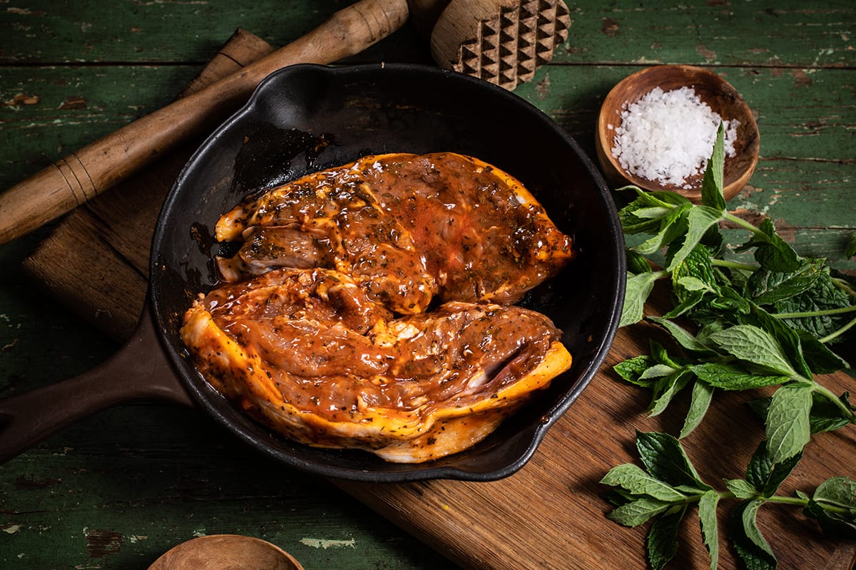 We believe our minty lamb steaks are truly outstanding. From native breed flocks that have been purely grass-fed on lush, natural pastures rich in wild grasses, flowers and herbs to produce a rich, full flavour, our free-range lamb is sourced from small, local, family run farms in Dorset and Wiltshire with the highest standards of animal welfare.